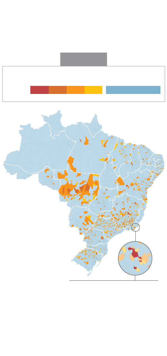 Os espaços em branco contidos no mapa são referentes aos territórios em que as EPs não foram destinadas em quatro anos consecutivos.