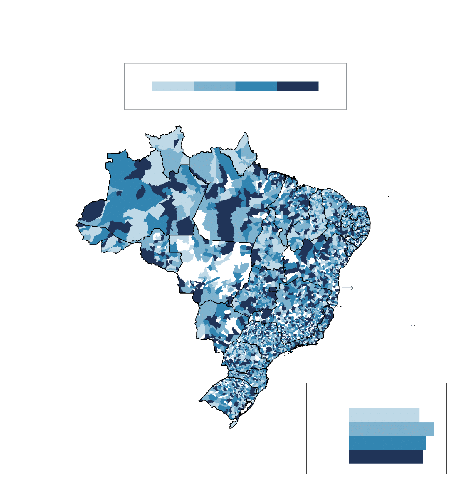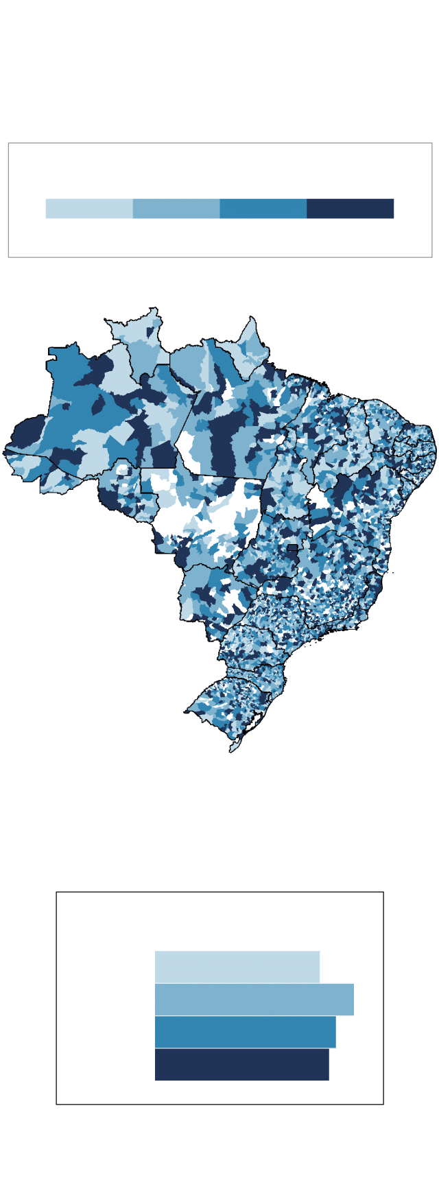 No Brasil, 759 (14%) dos municípios não receberam emendas de custeio em saúde nos 4 anos consecutivos. Entre os que não receberam, 69 receberam por 1 ano, 509 por 2 anos, 178 por 3 anos e 3 em nenhum ano.
